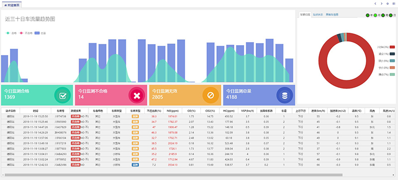 本平臺(tái)集數(shù)據(jù)采集、統(tǒng)計(jì)分析、報(bào)告發(fā)布、地圖于一體,實(shí)時(shí)監(jiān)測(cè)各個(gè)監(jiān)測(cè)點(diǎn)位上下行車道的車輛排污情況及各站點(diǎn)的環(huán)境空氣質(zhì)量信息。通過與其他交管信息庫對(duì)接,可以實(shí)現(xiàn)車輛基本信息的查詢,并由此對(duì)黃綠標(biāo)車、車輛燃油等類型的數(shù)據(jù)進(jìn)行統(tǒng)一的檢測(cè)和分析,可應(yīng)用于有車輛經(jīng)過的各個(gè)車道、場(chǎng)所以及車流量集中地。