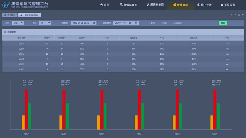 我司自主研發(fā)的黑煙車智能監(jiān)控管理平臺黑煙車查詢、黑煙車處罰、黑煙車數(shù)據(jù)統(tǒng)計等多項(xiàng)功能于一體,通過在城區(qū)各典型地段合理布設(shè),形成在線監(jiān)控網(wǎng)絡(luò),結(jié)合網(wǎng)絡(luò)傳輸技術(shù)與環(huán)境監(jiān)測中心和車輛管理中心實(shí)行數(shù)據(jù)共享與結(jié)果顯示,為決策研究者及地區(qū)機(jī)動車尾氣污染控制措施指定提供科學(xué)依據(jù),從而達(dá)到對整個城市黑煙車污染進(jìn)行在線監(jiān)測的目的。