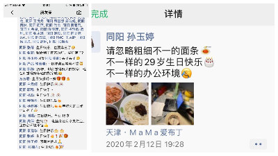 同呼吸,共命運(yùn)。一場疫情,讓我們看到的不只是一觸即發(fā)的崩潰、無處安放的恐慌,更多的是猝不及防的感動和心向暖陽的希望。疫情期間,商務(wù)部的孫玉婷在居家辦公中度過了自己29歲的生日。這個(gè)生日,對于她來說有些特殊,沒有生日蛋糕,沒有蠟燭,沒有禮物......有的是,電腦旁的那份工作計(jì)劃,愛人為她精心準(zhǔn)備的打鹵面,朋友、同事們的深深祝福。用她的話說“嚴(yán)峻的疫情形式之下,我們每一個(gè)人做好居家隔離就是對防疫的一份責(zé)任,做好居家辦公就是對企業(yè)對崗位的一份責(zé)任,做好的眼前的事情大于一切?!?span style="text-align:center;font-family:" font-size:12px;"="">