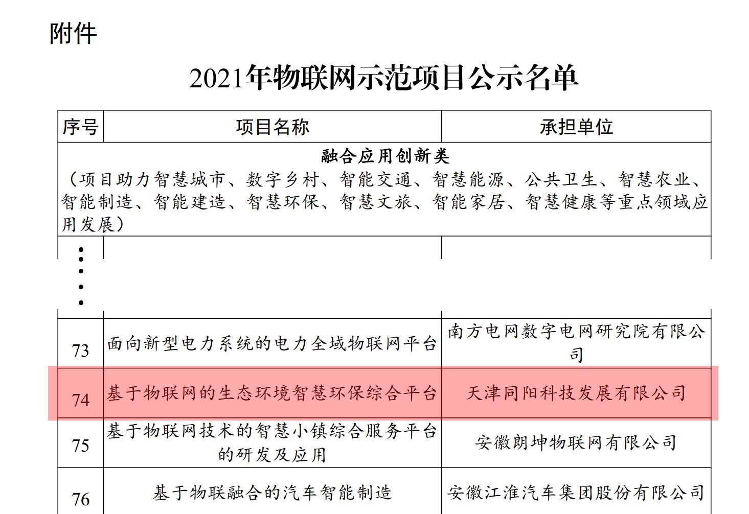 喜報 | 同陽科技強(qiáng)勢入圍工信部2021年度物聯(lián)網(wǎng)示范項(xiàng)目名單