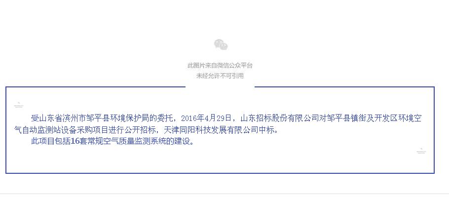同陽(yáng)科技中標(biāo)山東省鄒平縣鎮(zhèn)街及開(kāi)發(fā)區(qū)環(huán)境空氣自動(dòng)監(jiān)測(cè)站項(xiàng)目 更新時(shí)間:2016-05-05 點(diǎn)擊:27093 所屬欄目:公司新聞 Update Time:2016-05-05 Hits:27093 Belong Column:News