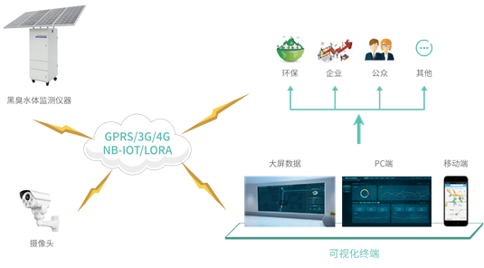 黑臭水體在線自動(dòng)監(jiān)測(cè)系統(tǒng)基于物聯(lián)網(wǎng)的理念,采用信息化手段,結(jié)合GIS展示,通過(guò)建立微型水站的方式實(shí)現(xiàn)對(duì)黑臭水體水質(zhì)、環(huán)境因素等的實(shí)時(shí)監(jiān)測(cè),通過(guò)專用的通訊系統(tǒng),將監(jiān)測(cè)數(shù)據(jù)上傳至遠(yuǎn)程的監(jiān)控中心和托管站,從而實(shí)現(xiàn)遠(yuǎn)程監(jiān)控的功能,建立長(zhǎng)效的監(jiān)督管理機(jī)制,動(dòng)態(tài)展示黑臭水體治理成果,最終達(dá)到提升人居環(huán)境質(zhì)量,改善城市生態(tài)環(huán)境的目的。